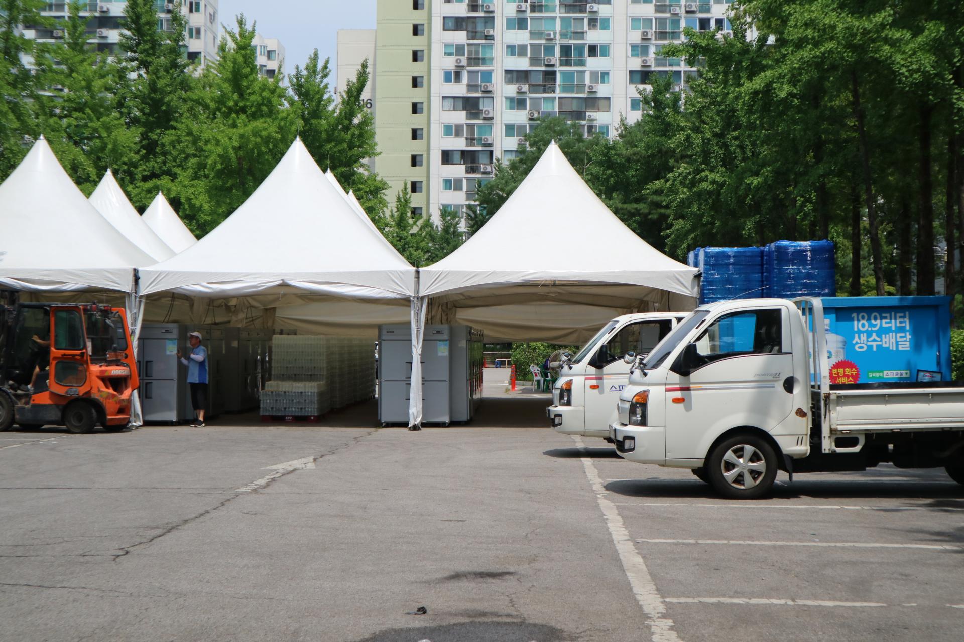5개 자치구 중에서도 사업을 가장 먼저 시작한 노원구는 올여름에만 216만병의 생수를 배포하겠다고 발표한 바 있다. 실제로 중계근린공원에서는 냉동고 수십대가 설치되어 매일 자치구 각 지역으로 운송될 생수들을 얼리고 있었으며 공원 한 켠에는 폐기된 생수병들이 가득 쌓여있었다.