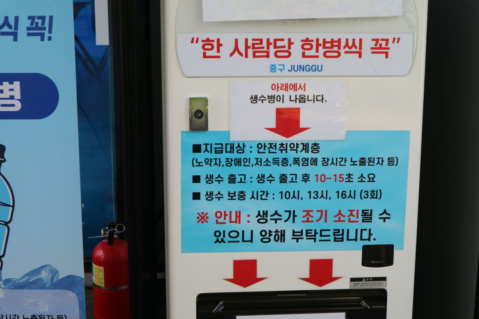 그리고 역시 이 자판기 바로 근처에도 음수대가 설치되어 있습니다.